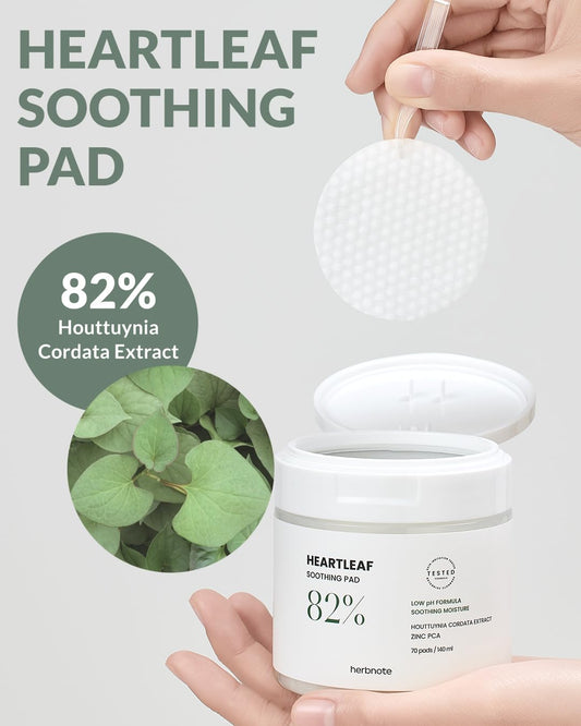 Almohadilla hidratante calmante de hoja de corazón - Enriquecida con 80 % de hoja de corazón extraída a baja temperatura y niacinamida para controlar el acné - Zinc PCA, quercitrina para aliviar la sensibilidad, 70 almohadillas